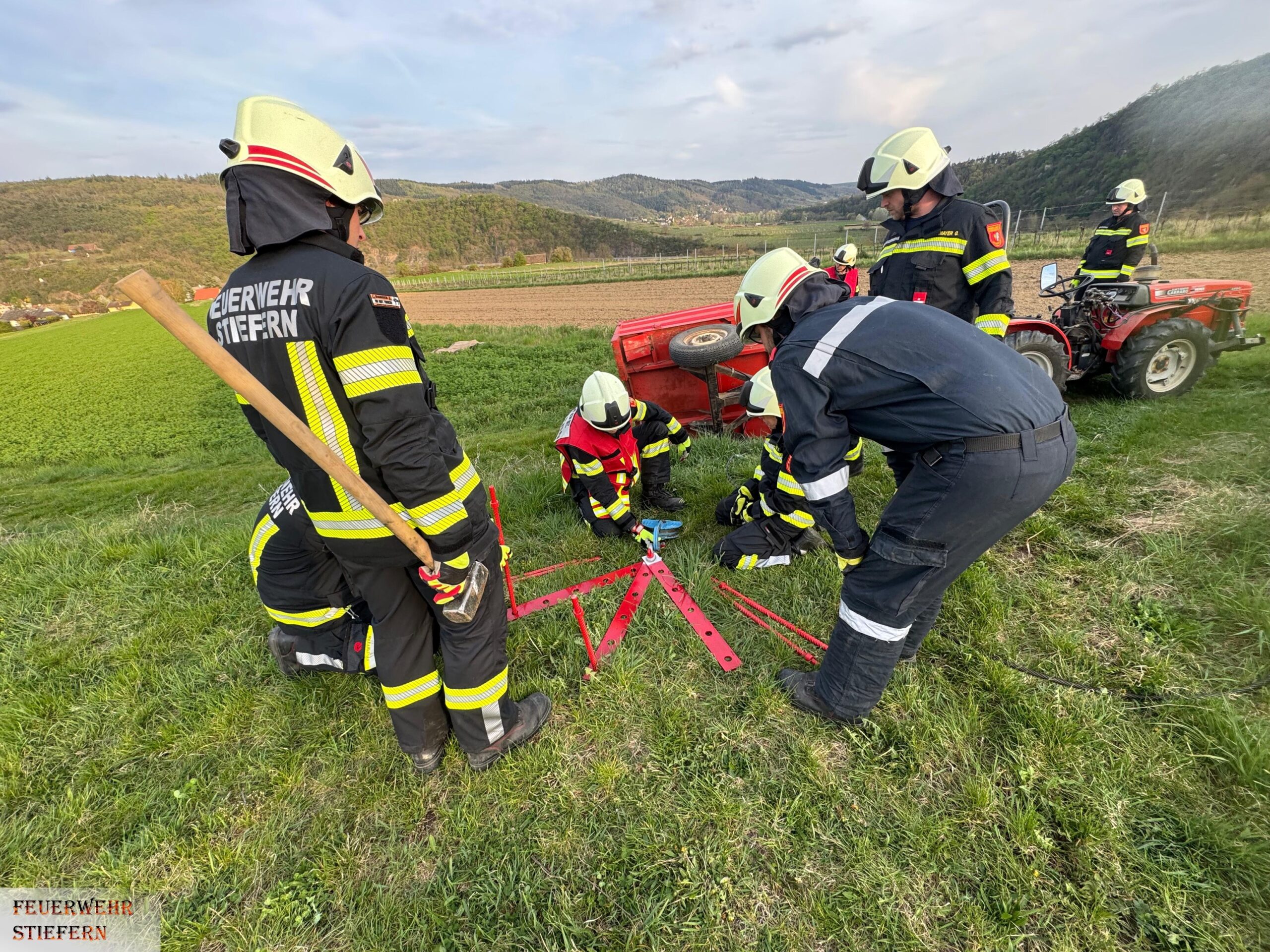 Am Montag Abend führte die Feuerwehr Stiefern eine technische Übung durch, in deren Rahmen ein Traktorunfall realitätsnah simuliert wurde.
